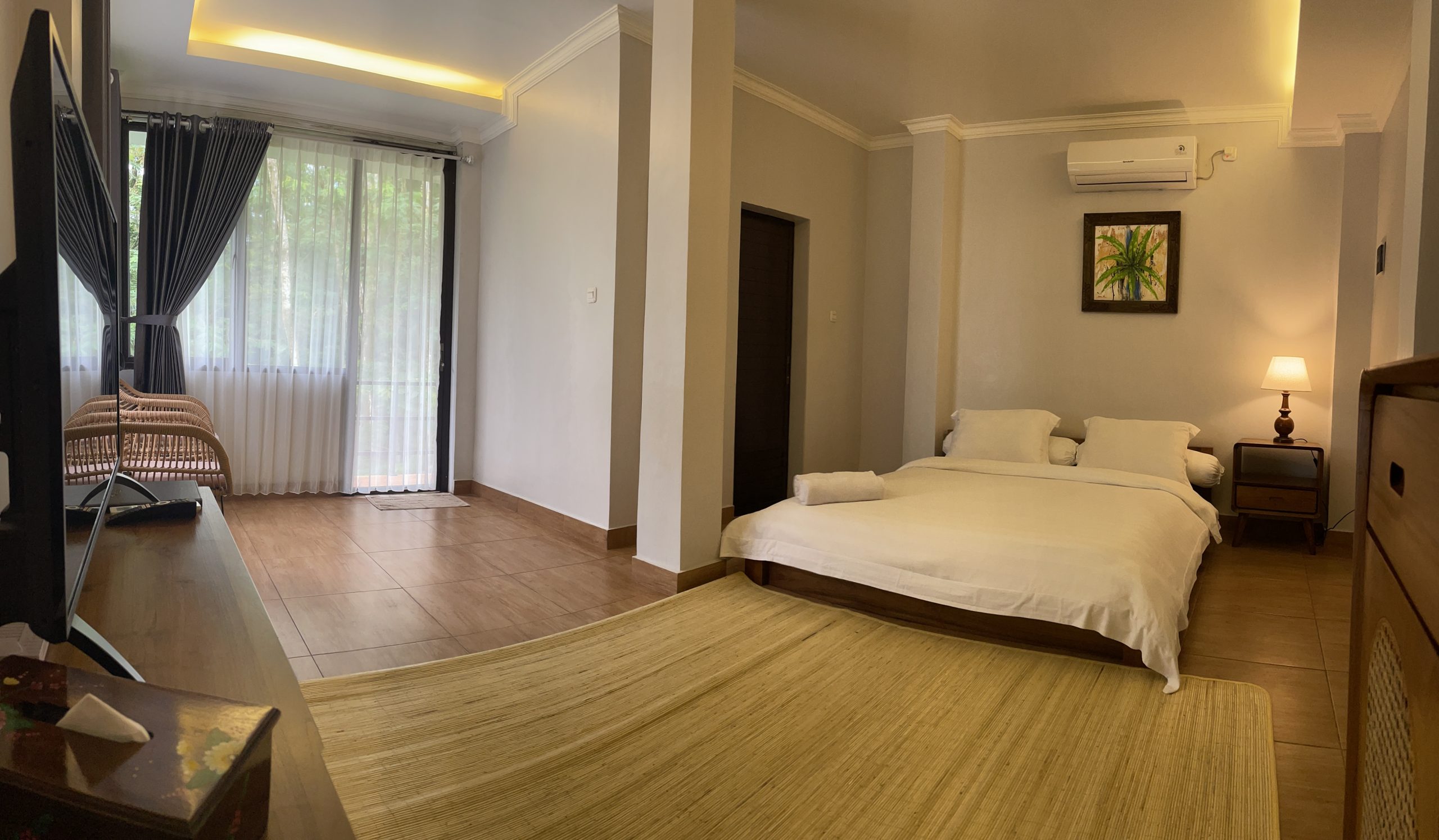 Villa Daun mengusung konsep liburan privasi. Kamar ini menjadi salah satu pilihan terbaik karena lokasinya yang sedikit lebih tersembunyi dibanding kamar lainnya, menjadikan kamar ini jauh dari kebisingan. Interiornya yang sederhana dan pencahayaan yang hangat menambah suasana romantis. Kamu bisa menikmati suara desir pepohonan dari balkonnya sambil menikmati segelas minuman hangat. Lokasinya dekat dengan restaurant, kolam renang dan Mini Zoo. Dengan kapasitas 2 orang, kamu bisa mengajak suami atau istri menikmati momen bersama.